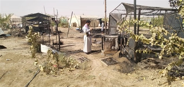 التهم حريق هائل، عصر اليوم الاثنين، سكن سبع أسر نازحة بمحافظة مأرب.